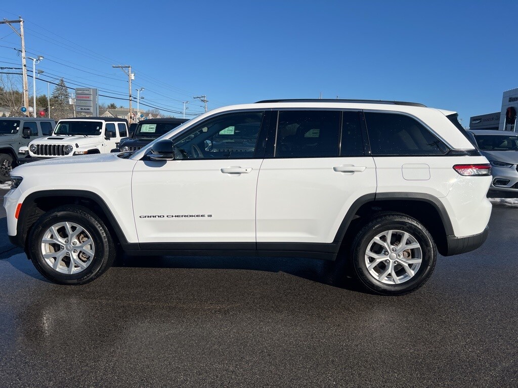 Recent Arrival! Clean CARFAX. Bright White Clearcoat 2023 Jeep Grand Cherokee Vehicle is equipped with: Quick Order Package 22E, 4WD, 3.45 Rear Axle Ratio, 4-Wheel Disc Brakes, 6 Speakers, ABS brakes, Active Noise Control System, Air Conditioning, Alloy wheels, AM/FM radio: SiriusXM with 360L, Anti-whiplash front head restraints, Audio memory, Auto High-beam Headlights, Automatic temperature control, Brake assist, Bumpers: body-color, Capri Leatherette Seats, Compass, Delay-off headlights, Driver door bin, Driver vanity mirror, Dual front impact airbags, Dual front side impact airbags, Electronic Stability Control, Emergency communication system, Four wheel independent suspension, Front anti-roll bar, Front Bucket Seats, Front Center Armrest w/Storage, Front dual zone A/C, Front fog lights, Front License Plate Bracket, Front reading lights, Fully automatic headlights, Garage door transmitter, Heated door mirrors, Heated front seats, Heated rear seats, Heated steering wheel, Illuminated entry, Knee airbag, Low tire pressure warning, Memory seat, Molded In Color Black/Gloss Black Roof Rails, Navigation System, Normal Duty Suspension, Occupant sensing airbag, Outside temperature display, Overhead airbag, Overhead console, Panic alarm, ParkView Rear Back-Up Camera, Passenger door bin, Passenger vanity mirror, Power door mirrors, Power driver seat, Power Liftgate, Power passenger seat, Power steering, Power windows, Radio data system, Radio: Uconnect 5 Nav w/10.1" Display, Rear anti-roll bar, Rear reading lights, Rear window defroster, Rear window wiper, Remote keyless entry, Security system, Speed control, Speed-Sensitive Wipers, Split folding rear seat, Spoiler, Steering wheel mounted audio controls, Tachometer, Telescoping steering wheel, Tilt steering wheel, Traction control, Trip computer, Turn signal indicator mirrors, Variably intermittent wipers, Voltmeter, and Wheels: 18" x 8" Fully Painted Aluminum. Limited 4WD 8-Speed Automatic 3.6L V6 24V VVT