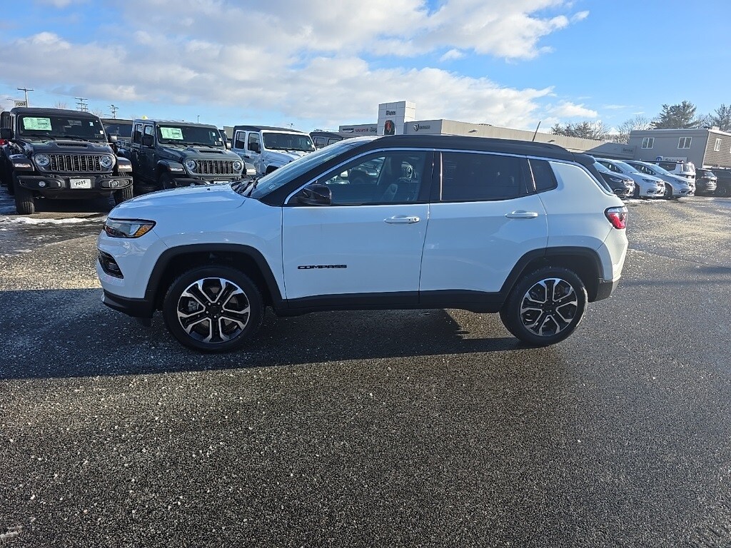 Recent Arrival! Clean CARFAX. Bright White Clearcoat 2024 Jeep Compass Vehicle is equipped with: Quick Order Package 29G Limited, 4WD, 10.1" Touchscreen Display, 3.73 Final Drive Ratio, 4-Wheel Disc Brakes, 4G LTE Wi-Fi Hot Spot, 6 Speakers, ABS brakes, Air Conditioning, Alloy wheels, AM/FM radio: SiriusXM, Auto High-beam Headlights, Auto-dimming Rear-View mirror, Automatic temperature control, Brake assist, Bumpers: body-color, Compass, Delay-off headlights, Disassociated Touchscreen Display, Driver door bin, Driver vanity mirror, Dual front impact airbags, Dual front side impact airbags, Electronic Stability Control, Emergency communication system: Jeep Connect, For Details, Visit DriveUconnect.com, For More Info, Call 800-643-2112, Four wheel independent suspension, Front anti-roll bar, Front Bucket Seats, Front Center Armrest w/Storage, Front dual zone A/C, Front fog lights, Front License Plate Bracket, Front reading lights, Fully automatic headlights, Global Telematics Box Module (TBM), Heated door mirrors, Heated front seats, Heated steering wheel, Illuminated entry, Knee airbag, Leather Shift Knob, Leather steering wheel, Leatherette Seats, Low tire pressure warning, Occupant sensing airbag, Outside temperature display, Overhead airbag, Overhead console, Panic alarm, ParkView Rear Back-Up Camera, Passenger door bin, Passenger vanity mirror, Power door mirrors, Power driver seat, Power steering, Power windows, Radio: Uconnect 5 w/10.1" Display, Rain sensing wipers, Rear anti-roll bar, Rear seat center armrest, Rear window defroster, Rear window wiper, Remote keyless entry, Security system, SiriusXM Guardian - Included Trial (B), SiriusXM Radio Service, Speed control, Split folding rear seat, Spoiler, Steering wheel mounted audio controls, Tachometer, Telescoping steering wheel, Tilt steering wheel, Traction control, Trip computer, Turn signal indicator mirrors, Variably intermittent wipers, and Wheels: 18" x 7" Painted Diamond Cut AluminuM. Limited 4WD 8-Speed Automatic 2.0L I4 DOHC